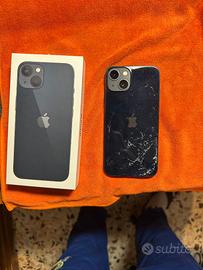 iPhone 13 funzionante, dietro rotto, cambio per passaggio di generazione successiva, stato batteria 80%