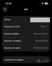 Iphone 13 pro 256 gb gold Batteria 77 % Camera posteriore non riconosciuta seppur funzionante Completo di scatola Cover omaggio Pellicoa protettiva installata 350 trattabili