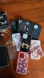 Completo di cavetto originale per la ricarica e 10 cover di vari tipi e colori incluse nel prezzo.