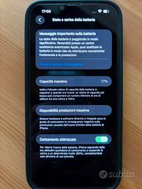 Vendo iPhone 13 Pro Max 128GB colore Graphite. Il telefono è perfettamente funzionante in tutte le sue funzioni: schermo OLED integro senza crepe né danni, tutte e tre le fotocamere funzionanti (grandangolo, standard e teleobiettivo), Face ID funzionante, altoparlanti e microfono ok, connettività WiFi, Bluetooth e 5G senza problemi. ⚠️ DIFETTI (dichiarati onestamente): •La scocca posteriore in vetro è rotta. È stata applicata una skin nera che copre completamente i danni. Con una qualsiasi cover non si vede assolutamente nulla. •La batteria è al 77% di capacità massima. Il telefono verrà consegnato con la skin applicata e la cover MagSafe nera che si vede nelle foto con pellicola privacy e caricatore.