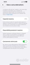 Vendo iPhone 13 Pro Max colore Grafite, memoria 128GB. Telefono in ottime condizioni, sempre tenuto con cura. Funzionamento perfetto in ogni sua parte (Face ID, fotocamere, audio, ecc.). 🔋 Batteria all’81% 📦 Scatola originale inclusa 🔌 Cavo di ricarica incluso 📸 Condizioni estetiche: * Display in ottimo stato (solo normali segni d’uso impercettibili) * Retro e fotocamere perfetti * Cornice con lievi segni visibili (come da foto) ✅ Nessun problema tecnico ✅ Non bloccato (iCloud libero) ✅ Pronto all’uso Perfetto per chi cerca un top di gamma Apple a prezzo più accessibile. 📦 Spedizione veloce 💬 Disponibile per qualsiasi domanda