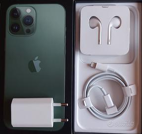 Vendo per passaggio a cellulare di categoria superiore Iphone 13 Pro Max 256GB colore Alpine Green, come si vede dalle foto il cellulare è come nuovo, comprensivo di scatola originale, auricolari, cavo di alimentazione in dotazione e mai utilizzati + alimentatore Apple originale. Già provveduto a resettarlo e scollegato l'account. Il prezzo è trattabile.