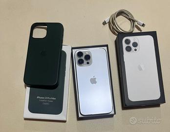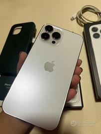 iPhone 13 Pro Max – 256GB – Silver •Condizioni: ottime •Batteria: 80% •Protetto con pellicola in vetro temperato (cambiata di recente presso La Casa de las Carcasas) •Incluso: cover MagSafe verde originale •Incluso anche cavo di ricarica •Disponibile scontrino d’acquisto del 15/02/2022 Telefono perfettamente funzionante, nessun difetto tecnico.