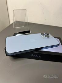 iphone 13 pro max 128gb ,colore azzurro, tenuto bene con cover e vetro protettivo completo di scatola e scontrino stato batteria 80%