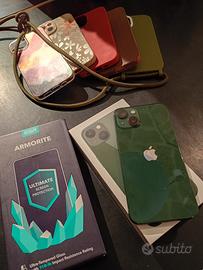 Iphone 13 verde con pezzi originali, mai cambiato nulla. Presenta solo una piccola ammaccatura in un angolo. Regalo 5 cover e 7 vetrini tra normali e privacy. 330€ leggermente trattabili.
