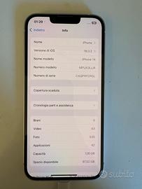 iPhone 14 bianco 128gb perfetto funzionante Batteria 89% No scatola e accessori SOLO TELEFONO
