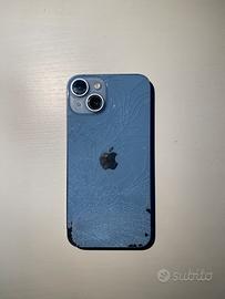 Iphone 14 128 gb blue Il dispositivo presenta le seguenti problematiche: •Back glass rotto •Fotocamera posteriore difettosa •Display leggermente graffiato come mostrato in foto, ma che non compromette l’utilizzo •Cornice con qualche segno Oltre questi difetti estetici, qualunque altra funzione del telefono è disponibile, la batteria è stata cambiata a luglio 2025 con una compatibile ed è al 95%. Touch completamente funzionante, nessun blocco icloud o sim. Scatola originale compresa. Non sono accettati resi in quanto il dispositivo é venduto per riparazione o ricambi. In caso di spedizione il pacco verrà imballato per far sì che non subisca danni nel processo di spedizione. Per ulteriori informazioni sarò disponibile a chiarire ogni tuo dubbio.