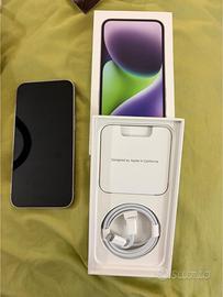 Vendo IPhone 14 128 gb di colore lilla per passaggio a telefono nuovo. L’Iphone, quasi come nuovo, si presenta come in foto con scatola e cavo originali. Presenta una sola piccolissima levigatura sul bordo. Lo schermo come nuovo. Telefono perfettamente funzionante con stato batteria a 83%