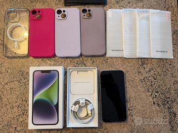 Come da titolo vendo questo Iphone 14 128gb viola con capacità massima della batteria pari all'85% e soprattutto tenuto in maiera maniacale con cover e pellicola quindi senza nessun graffio e nessun segn di usura. Nel prezzo incluse tutte le 4 cover e 4 pellicole.
