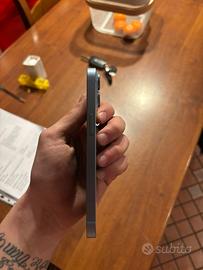 Iphone 14 azzurro, batteria 86%, appena cambiati speaker e connettore carica batterie, fotocamera posteriore leggermente scheggiata sul lato ma non influisce sulle foto, con carica batterie.