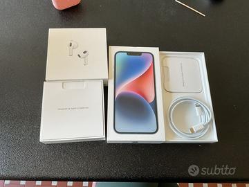 iPhone 14 blu 128 + AirPods 3 gen e accessori