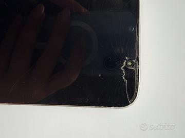 Il telefono presenta schermo anteriore rotto e qualche ammaccatura sui bordi, come visibile in foto, ma non influisce sul funzionamento: touch, fotocamere, audio, Face ID e connettività tutto OK.