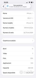 iPhone 14 da 256 GB Rosso come nuovo, nemmeno un graffio. Come da foto. Mai caduto prodotto molto affidabile e sicuro. Batteria capacità 84% ottima autonomia. Con due cover e vetro di protezione. Regalo caricatore veloce e cavo di ricarica.