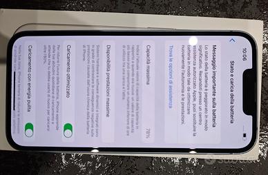 vendo IPhone 14 128G perfettamente funzionante, colore celeste chiaro, nessun graffio, nessuna ammaccatura, batteria al 78%, per un utilizzo moderato dura tranquillamente fino a fine giornata. unico proprietario. fornisco con pellicola di protezione al vetro + 1 custodia per il cellulare.