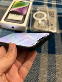 Apple iPhone 14 Plus 128 gb Black pagato nuovo più di 1000 euro lo sto dando quasi 800 euro in meno… È in ottime condizioni sembra nuovo, usato due anni e mezzo come telefono di lavoro (quindi poco), completamente originale e tutto perfettamente funzionante. Prima di venderlo è stato resettato, pulito e inizializzato presso un laboratorio di informatica della mia città, inoltre gli è stato anche fatto un check test prima di venderlo con il programma apposito usato dal laboratorio ecco perché l’adesivo sulla scatola. Vendo con pellicola di vetro che vedete in foto già applicata sullo schermo in maniera perfetta e con cover trasparente mag safe anch’essa presente in foto, ovviamente il suo scatolo originale è incluso manca solo il caricabatterie perche lo uso per l’iPad, l’ho comprato a parte e non lo vendo. Stato batteria visibile nell’ultima foto (82%), ha ancora un’ottima durata. Spedito solo con TuttoSubito per questioni di sicurezza, vendita e spedizione assicurati, grazie.