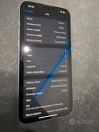Vendo iPhone 14 plus con vetro posteriore crepato ma perfettamente funzionante, completo solo di cavetto per la ricarica