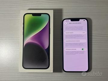 Vendo iPhone 14 Plus 256GB Mezzanotte. Il telefono è esteticamente pari al nuovo, sempre utilizzato con cover e pellicola. Non presenta alcun graffio o segno, verificabile sia di persona sia dopo eventuale spedizione. Batteria al 100% originale Apple, sostituita presso Apple Store e verificabile direttamente nelle impostazioni. Il dispositivo è perfettamente funzionante in ogni sua parte, libero da qualsiasi vincolo finanziario o da operatori telefonici. No perditempo, prezzo leggermente trattabile. Preferibile consegna a mano.