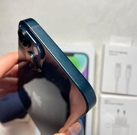 iphone 14 plus 512 gb, colore mezzanotte. schermo perfetto tranne un piccolo segno nella zona inferiore. bordi e retro presentano segni d’usura classici dovuti all’utilizzo della cover.