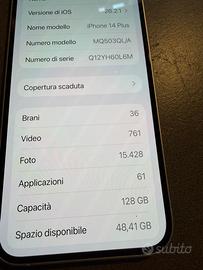 Per passaggio a modello superiore vendo bellissimo Iphone 14 plus come nuovo Con scatola. Batteria 87%. Tenuto Sempre con custodia, nessun graffio