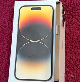 Iphone 14 pro 256 GB gold, privo di graffi, utilizzato sempre e solo con cover integrali e vetro di protezione schermo. Comprensivo di cavo di ricarica e diverse cover