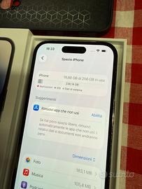 Vendo IPhone 14 Pro 256GB Space Black pari al nuovo senza graffi perfettamente funzionante Completamente originale Batteria 86% Schermo originale Face ID funziona IOS 26.3 ultimo aggiornamento Scatola ,cover,cavo originale incluso Prezzo non trattabile assolutamente Ritiro in zona solo Bologna Non faccio spedizioni
