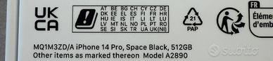 â˘Modello: iPhone 14 Pro (A2890)