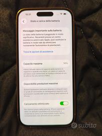 iPhone 14 Pro 128GB Bianco Ottime condizioni é perfettamente funzionante, sempre tenuto con cura. Esteticamente in ottime condizioni Batteria al 74%: dura ancora ma da sostituire per avere prestazioni ottimali Display e fotocamere perfetti. Nessun problema, pronto all’uso. Prezzo leggermente trattabile