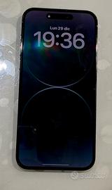 Vendo iPhone 14 Pro Max da 128 GB colore **Space** Black, sempre usato con cover e vetro temperato. Il telefono è in ottime condizioni estetiche, senza graffi visibili su schermo e scocca, e perfettamente funzionante. Batteria al 78%, normale usura dovuta all’utilizzo quotidiano. In regalo cover originale Apple in pelle e cover gommata trasparente. Dettagli: - Modello: iPhone 14 Pro Max - Memoria: 128 GB - Colore: Space Black - Condizioni estetiche: ottime, senza graffi - Batteria: 78% - Accessori: scatola, cavo di ricarica - Extra: cover originale Apple in pelle + cover gommata trasparente - Zona: Barletta (BT), Puglia Note: - Prezzo leggermente trattabile - Preferita consegna a mano, possibile spedizione previo accordo - Non si accettano scambi