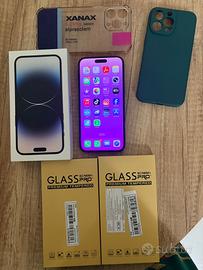 Vendo iPhone 14 Pro Max capacità batteria 100% cambiata da poco, insieme a scatola, vetri protettivi nuovi e due covers. Scambio a mano Viareggio. Condizioni ottime piccoli segni di usura laterali causa utilizzo. Vetri e fotocamera perfetti