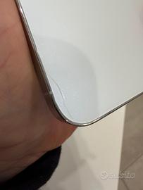 Unico difetto scheggiatuta nell’angolimo posteriore del telefono basso,ma assolutamente impercettibile lo dico perche’ e’ giusto dirlo.