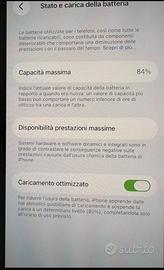 Capacità batteria 84% come da foto.