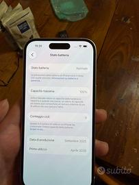 Vendo iPhone 15 pari al nuovo, modello sostitutivo ufficiale Apple (codice N) attivato ad Aprile 2026. Il telefono è impeccabile e mai usato, come dimostrano i dati di sistema: batteria al 100% con 0 (zero) cicli di ricarica. Include la sua scatola originale e il cavo USB-C . No scambi o perditempo. Prezzo leggermente trattabile