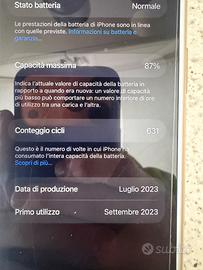 Vendo iPhone 15 tenuto sempre con pellicola e cover, è immacolato se non per un piccolissimo segno sulla scocca come si vede dalle foto quasi impercettibile, tutto originale, vendo solo per passaggio ad altro modello, insieme regalo anche 4/5 cover, per qualsiasi informazione non esitate a contattarmi