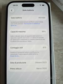 Iphone 15 perfetto memoria 128 gb tenuto sempre con custodia, capacità batteria 89%. Compreso di scatolo, originale.