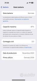 Iphone 15 128 Gb Acquistato a gennaio 2024 Scocca perfetta, sempre tenuto con cover Ha qualche lievissimo segno sul vetro, ma da acceso è impercettibile Batteria 87% come da screen Cover azzurra / trasparente in omaggio