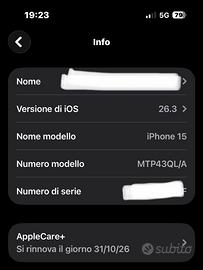 iPhone 15 128GB - Perfetto, Applecare fino 03/2026
