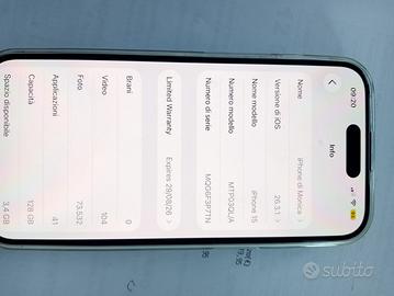 iPhone 15 6 1 Oled A16 128 GB va Black Apple Mtp03qla con accessori e garanzia e scontrino e kasko incapace di utilizzarlo