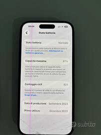 Vendo iPhone 15 128 Gb nero usato VETRO DA SOSTITUIRE ma funzionante in ogni sua parte compreso di N 3 cover una verde una blu e una trasparente per ulteriori informazioni contattatemi senza nessun problema