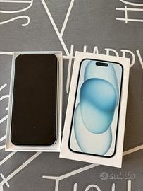 Vendo iPhone 15 128 GB colore azzurro pastello, in perfette condizioni e perfettamente funzionante.