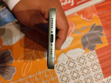 Vendo iPhone 15 in eccellenti condizioni dal punto di vista estetico e funzionale. Il telefono è sempre stato utilizzato con cura e protetto da cover e vetro temperato. La capacità della batteria è all’85%, un valore normale per l’uso quotidiano e che garantisce ancora una buona autonomia (quando viene caricato dura un giorno). Sono inclusi anche la scatola originale e il caricabatterie.