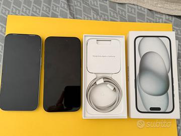 Vendo 2 Apple iPhone 15 da 128GB colore bianco e nero, in ottime condizioni. Telefono perfettamente funzionante, completo di scatola originale e cavo USB-C. Sempre utilizzato con cura. Caratteristiche principali: • Display Super Retina XDR da 6,1” • Fotocamera principale 48 MP • Chip A16 Bionic • Dynamic Island • Connettività 5G • Porta USB-C • Memoria 128 GB Telefono veloce, affidabile e con fotocamera eccellente. Condizioni: ✔ perfettamente funzionante ✔ nessun blocco o account ✔ pronto all’uso Prezzo: 510€ al pezzo Possibile spedizione Pagamento anche tramite PayPal Per informazioni scrivere in privato