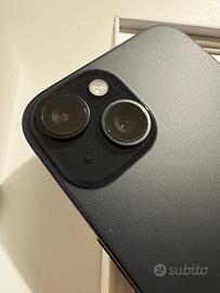 Apple iPhone 15 - 256 GB - Nero - senza blocco - MAI USATO- con applicata la cover display protettiva.