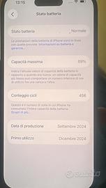 Capacità massima pari al 89% come mostrato in foto sul display foto a richiesta di garanzia e scontrino prezzo trattabile