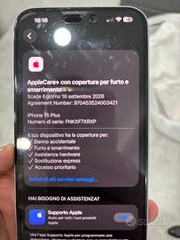 Iphone 15 plus 256gb AppleCare+ 09/2026