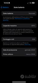Salve, vendo questo iPhone 15 Pro da 128 GB, in ottime condizioni. (Capacità batteria 89%)