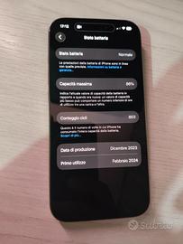 Vendo bellissimo iPhone 15 pro da 128 GB per passaggio a modello successivo. Sempre tenuto maniacalmente, da vero appassionato. Mai andato in assistenza e acquistato nuovo e non ricondizionato. Vengo completo di accessori, prezzo poco trattabile.