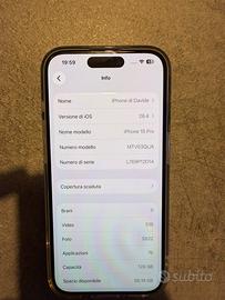 Vendo iphone 15 pro in condizioni perfette e funzionante al 100%. Batteria 88% e con pellicola applicata. Vendo con 4 cover e cavo di ricarica originale. Prezzo leggermente trattabile e consegna a mano.