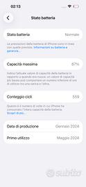 Vendo iphone 15 pro 256 gb bianco, in ottime condizioni con un millimetrico segno di usura in un obiettivo della fotocamera posteriore (vedi foto) che non intacca la resa della fotocamera. Il telefono é completo di pellicola anteriore, di scatola, filo di ricarica e cover posteriore originale Apple che do in omaggio.