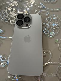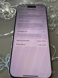 iPhone 15 pro 256 gb tenuto in maniera perfetta, zero graffi nessun difetto, montata fin dal primo giorno pellicola schermo e cover fotocamera. Batteria al 100% (batteria è la sua originale, non é stata sostituita. Ha 100% perché è stato usato veramente poco).