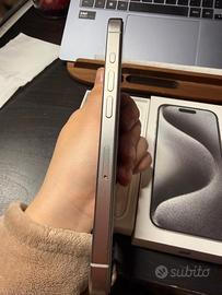 Per passaggio a modello successivo vendo iphone 15 pro 256gb, capacità massima batteria 89, comprato a maggio 2024, in condizioni perfette, nessun tipo di graffio, ho sempre tenuto la pellicola protettiva e la cover